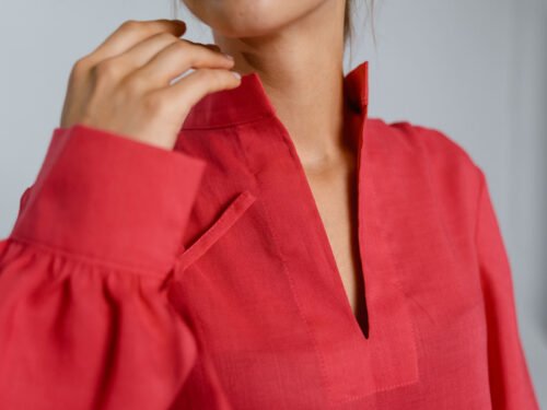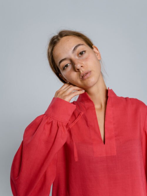 Red 100% organic linen